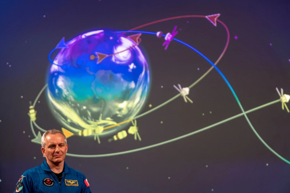 Canadian astronaut David Saint-Jacques, of the Canadian Space Agency (CSA), talks about the Artemis II lunar mission to attendees of a viewing party of the Artemis II launch, in Longueuil, near Montreal, Quebec, on April 1, 2026. Photo by ANDREJ IVANOV / AFP