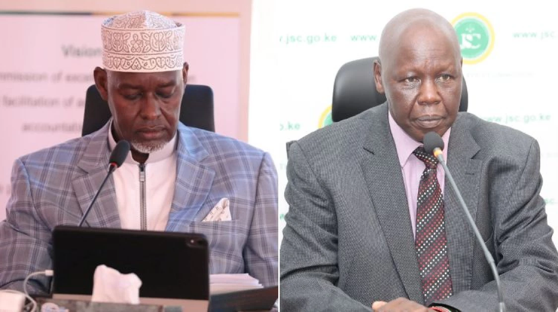 A photo collage of Justices Warsame Abdulahi Mohammed and Joseph Kipchumba Kigen Katwa, who are among the shortlisted candidates for the position of Supreme Court Judge. PHOTO | JSC