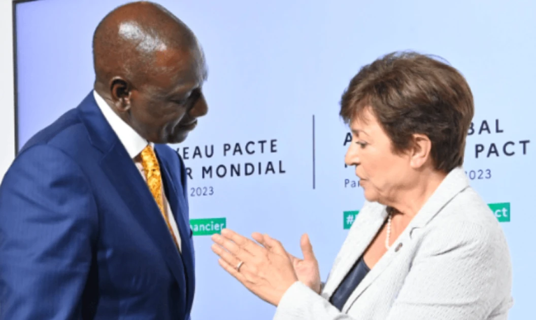 President William Ruto and Kristalina Georgieva, Managing Director of the International Monetary Fund (IMF), at the "New Global Financing Compact" summit in Paris on 22 June 2023. PHOTO| FILE
