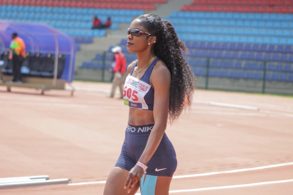 Kenyan sprinter Millicent Ndoro walks at the Ulinzi Complex track after a training session ahead of 2026 Kip Keino Classic. Photo/Handout.