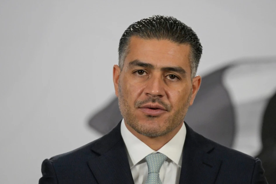 Mexican Secretary of Security and Citizen Protection, Omar Hamid Garcia Harfuch, speaks during Mexican president Claudia Sheinbaum's morning presser in Mexico City, on April 14, 2026. (Photo by Alfredo ESTRELLA / AFP)
