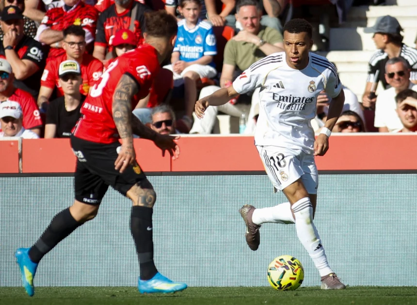 Arda Guler rolled a ball in behind Mallorca's defence for the French superstar to dart on to but Leo Roan saved with his leg.
