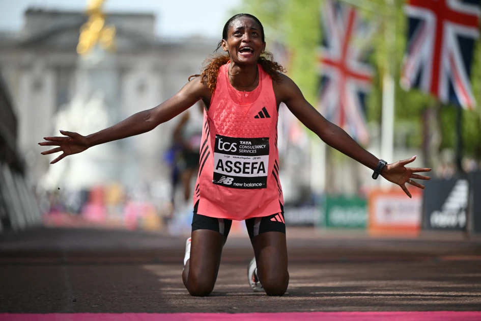 Obiri finishes second as Assefa sets women’s-only world record at London Marathon