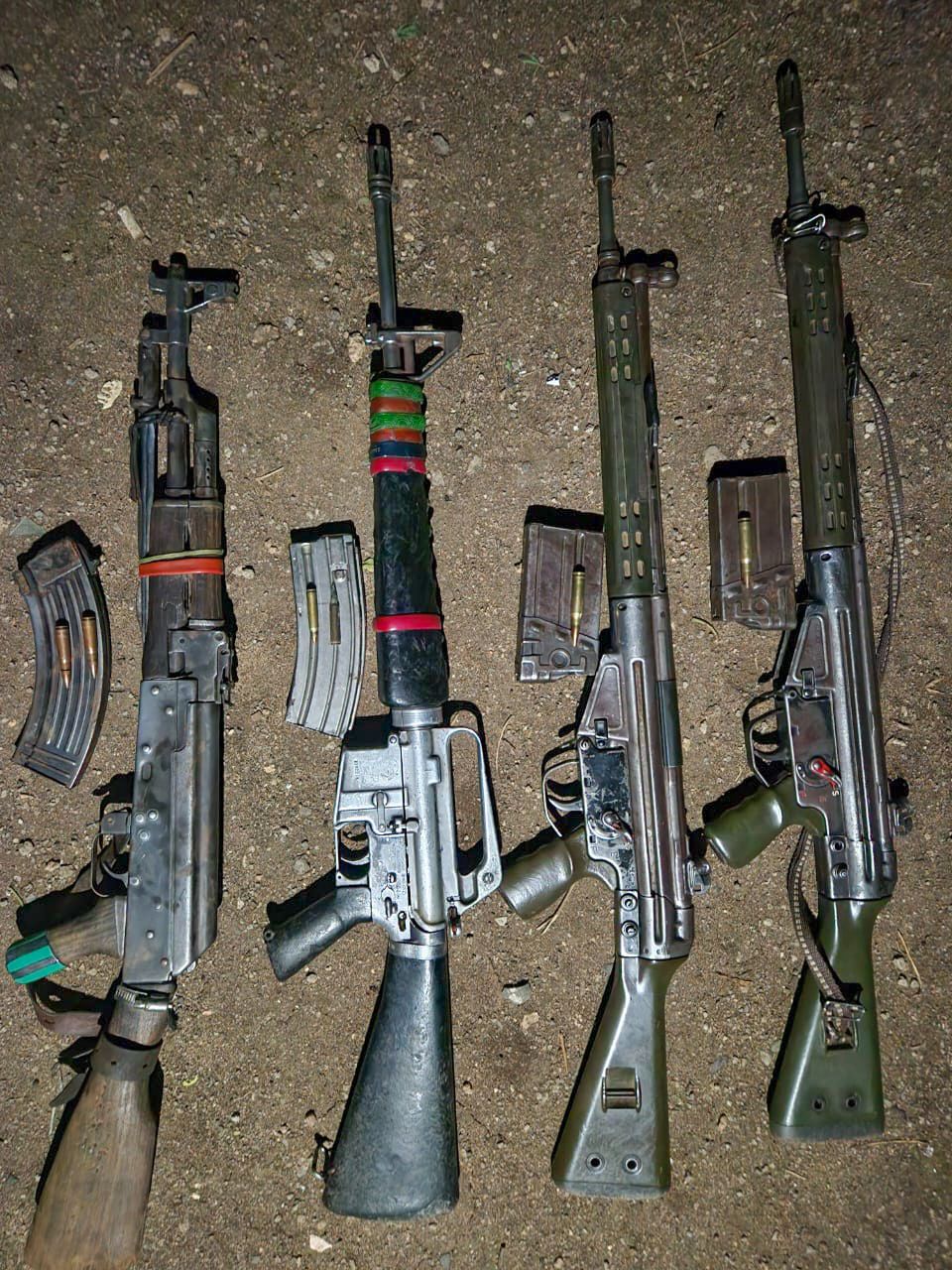 The seized weapons include two G3 rifles, one M16 rifle, and an AK-47, along with four magazines and ammunition.