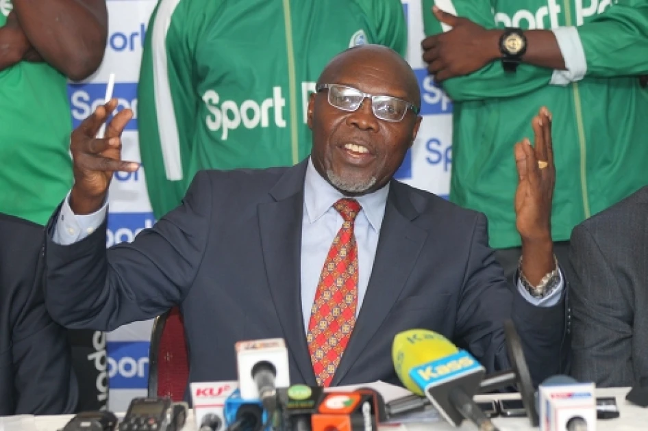 Gor Mahia chairman Ambrose Rachier gestures during a past press conference. Photo/ Sportpicha