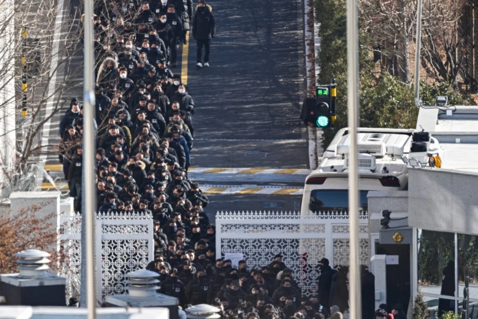 Police officers and investigators leave the residence of impeached South Korean President Yoon Suk Yeol in Seoul on January 15, 2025. (Photo by AFP)