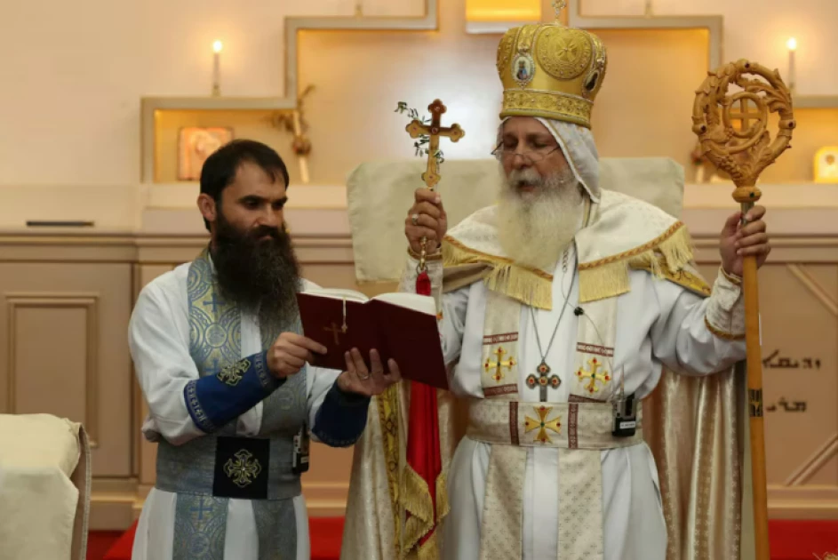 A supplied image obtained on Tuesday, April 16, 2024, shows Senior Parish Priest Fr. Isaac Royel (L) and Bishop Mar Mari Emmanuel during the 2023 Holy Resurrection Feast services, in Sydney, Australia. AAP Image/Supplied by Christ The Good Shepherd Church via REUTERS
