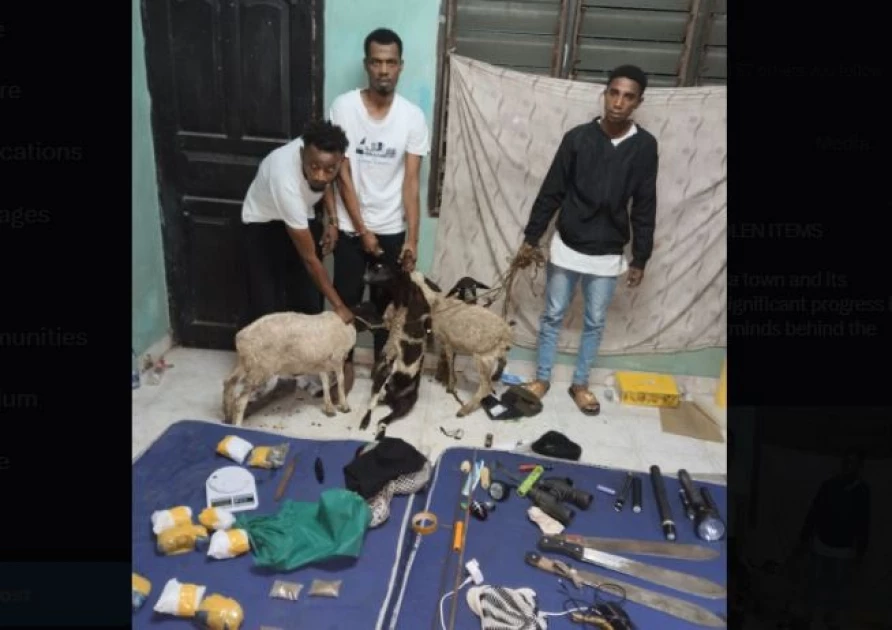 A search conducted in the hideout led to the discovery of four pangas, two Y-6 twisted metal bars sharpened at the edges, eighteen small bales of bhang, ten assorted suspected stolen mobile phones, six spotlights, four suspected stolen livestock (sheep), one 32-inch TV, and one gas cylinder.