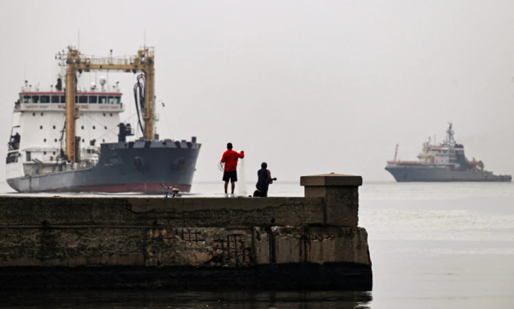 The fleet oil tanker Pashin (left) and the rescue and tugboat Nicolay Chiker (right) of the Russian navy. (File photo by YAMIL LAGE / AFP)