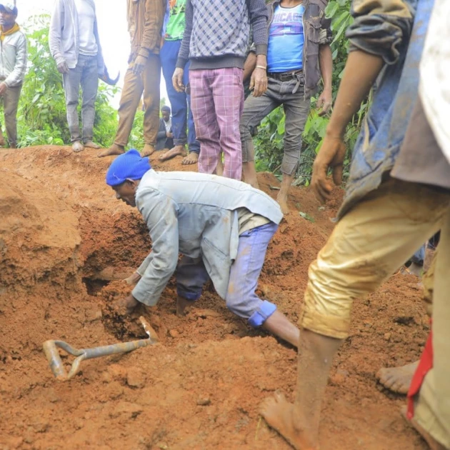 Images shared on Facebook by the local authority on Monday showed large crowds of people near a devastating scene of tumbled red soil.