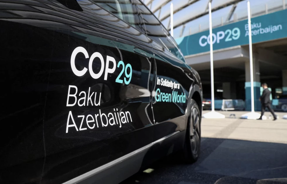 A car is parked at the venue of the United Nations climate change conference, known as COP29, during a media tour ahead of the summit beginning in Baku, Azerbaijan November 8, 2024. REUTERS/Aziz Karimov/File Photo