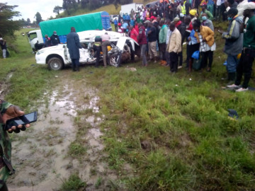 The private car which was reportedly ferrying five people to a funeral in Kisumu reportedly lost control and landed onto the opposite side of the road where it was struck by an oncoming lorry.