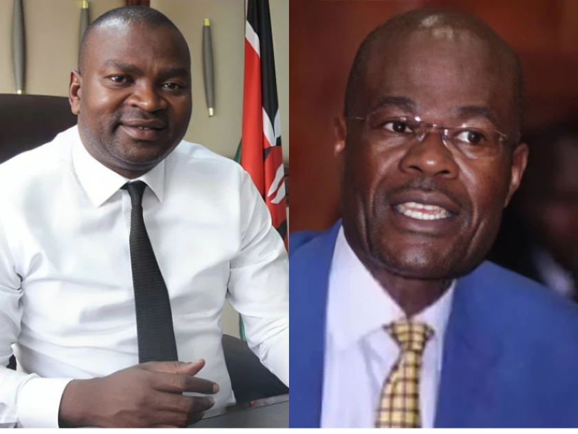 A side by side image of Former Sports Cabinet Secretary Rashid Echesa and retired Major General Major Jofidha Makowenga