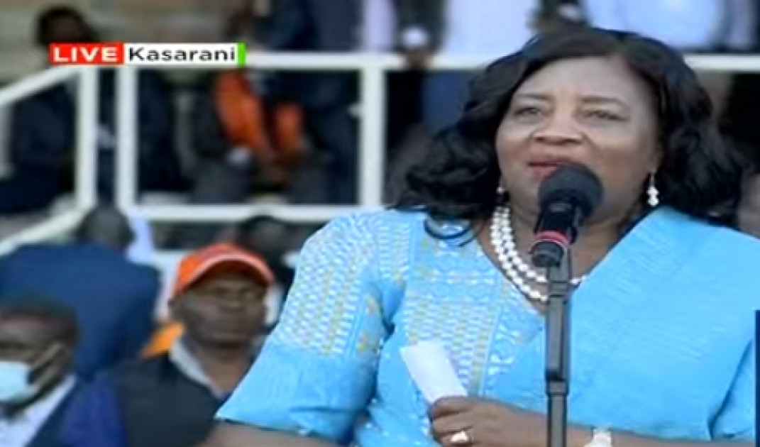 File photo of Ida Odinga speaking at the Azimio la Umoja Convention on December 10, 2021.