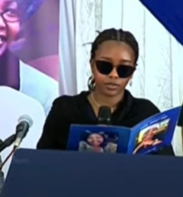 Suzanne Jepkemboi, the daughter of late June Chebet Moi paid tribute to her mother during her burial ceremony held at AIC Kabarak in Nakuru County on Thursday.