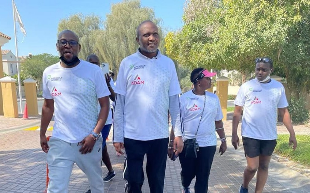 walking along a Dubai neighbourhood, in the United Arab Emirates, alongside friends