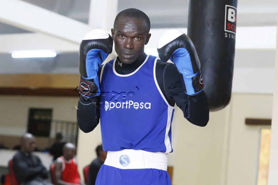 Boxer Nick Okoth during the team's training session at Moi International Sports Centre Kasarani in Nairobi on August 6, 2019. Kenya is preparing ahead of the All African Games to be held in Rabat, Morocco from August 16-31, 2019. Photo/Sportpicha/Citizen Digital.