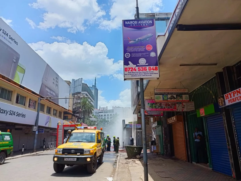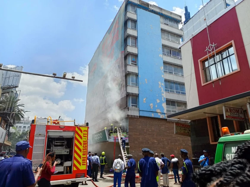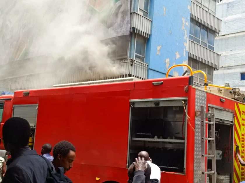 Activities at the Nacico Co. Op Chambers building along Moi Avenue, in Nairobi, came to a stop on Monday afternoon after fire broke out in one of the floors.