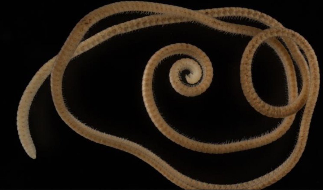 millimeter) wide -- has 330 body segments, antennae, a beak for feeding and a