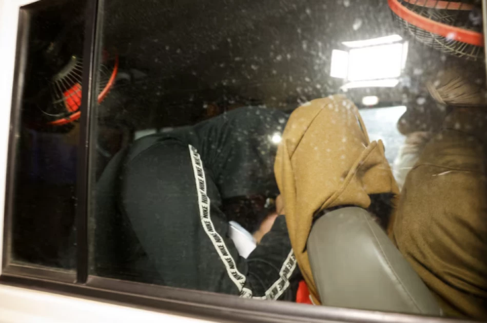 An Indian immigrant deported from the U.S. sits in a police vehicle as they leave the airport in Amritsar, India February 5, 2025. REUTERS/Adnan Abidi