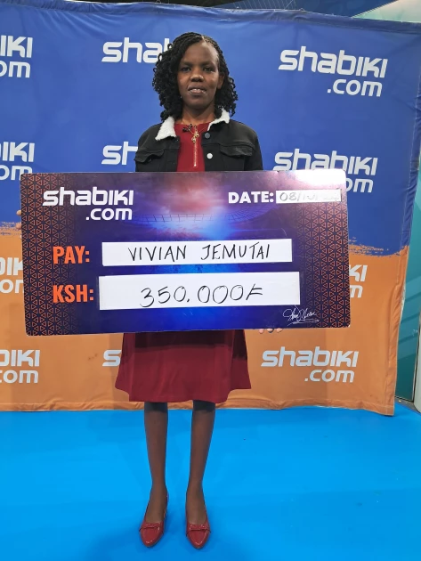 Jemutai, a resident of Eldoret, is all smiles after she became the third weekly